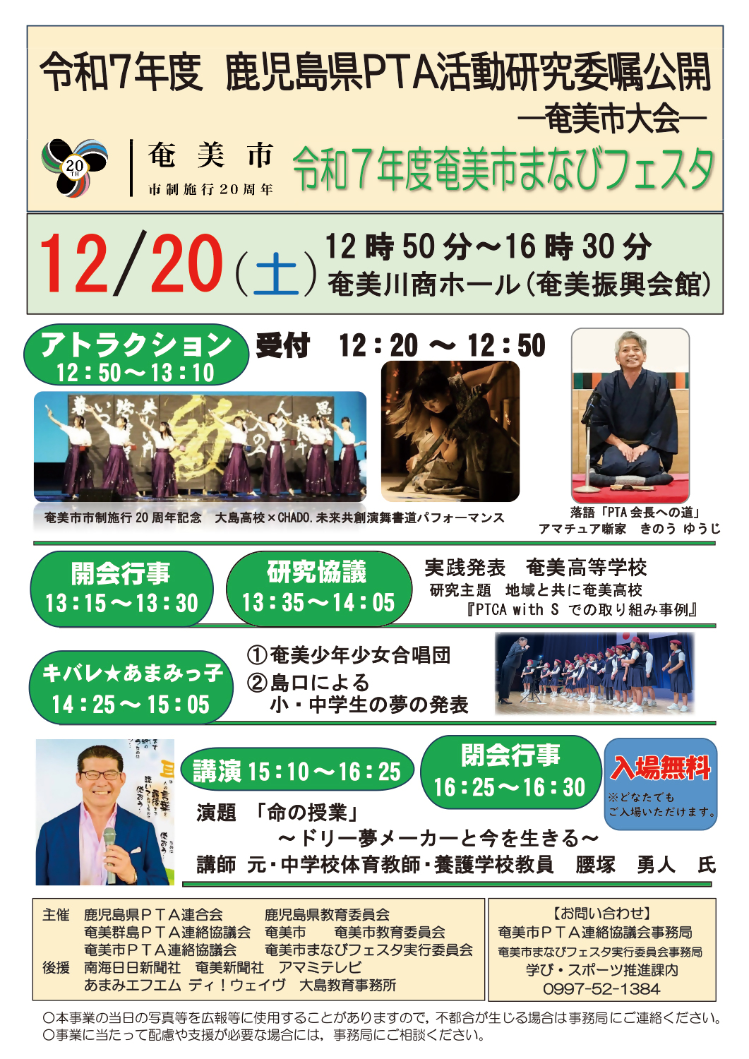 令和7年度県PTA活動研究委嘱公開奄美市大会及び奄美市市制施行20周年記念令和7年度奄美市まなびフェスタ